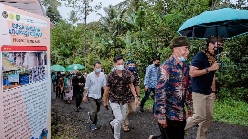 “Potensi Desa Cisaat yang bisa dikembangkan adalah potensi buah nanas, wisata edukasi susu sapi perah, dan satu program yang memiliki unsur keberlanjutan energi baru dan terbarukan yaitu produk arang dari kayu mahoni yang sudah diekspor,” ungkap Sandiaga.