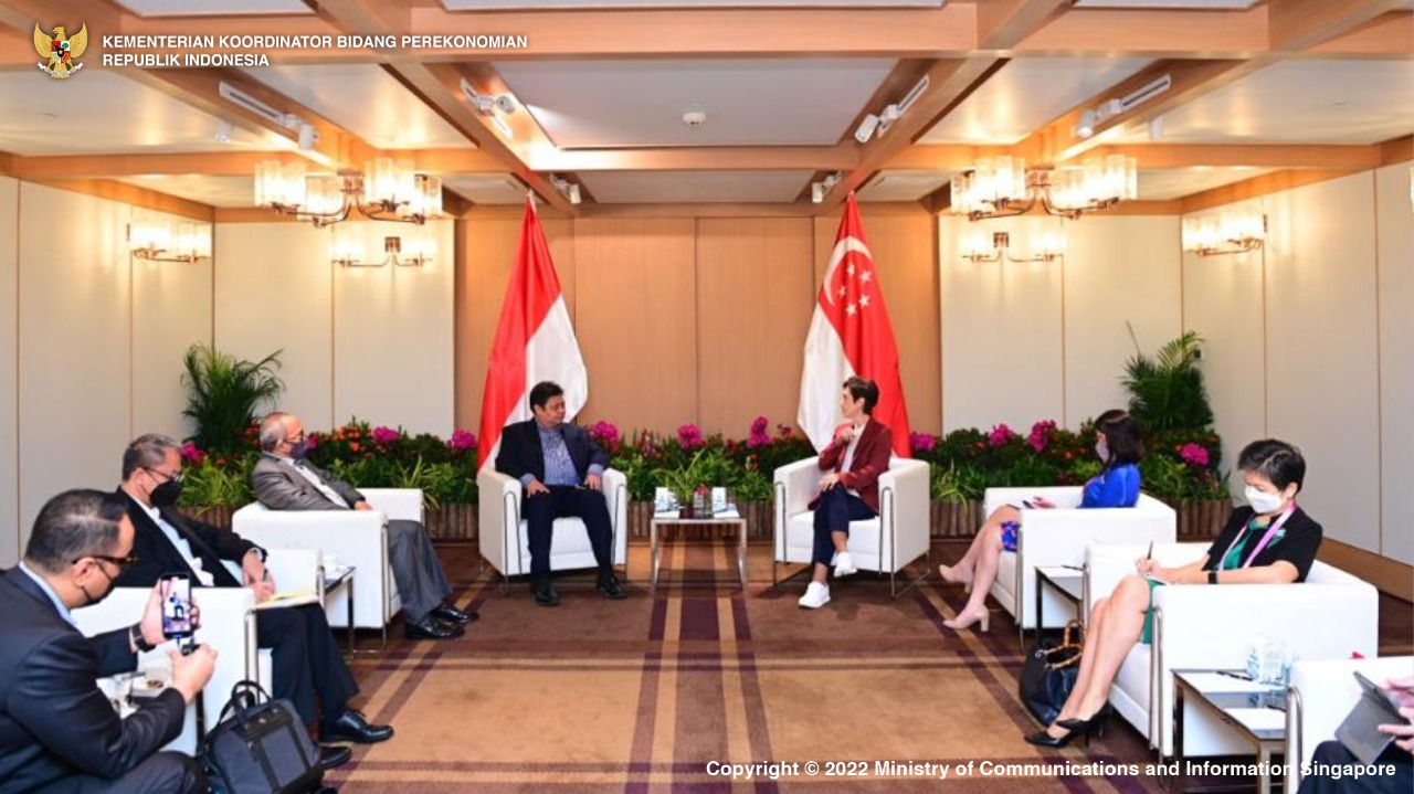 Dalam pertemuan itu, Menko Airlangga menyampaikan tindak lanjut hasil pertemuan antar pimpinan negara dalam pertemuan Leaders Retreat Indonesia ⁴j 41– Singapura 2022.
